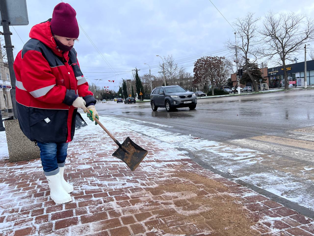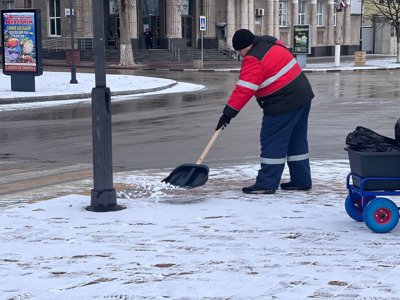 Около 100 рабочих очищали от снега площадки на остановках общественного транспорта и подходы к ним, территории парков, скверов. Входные группы МКД посыпочной смесью обрабатывали дворники.