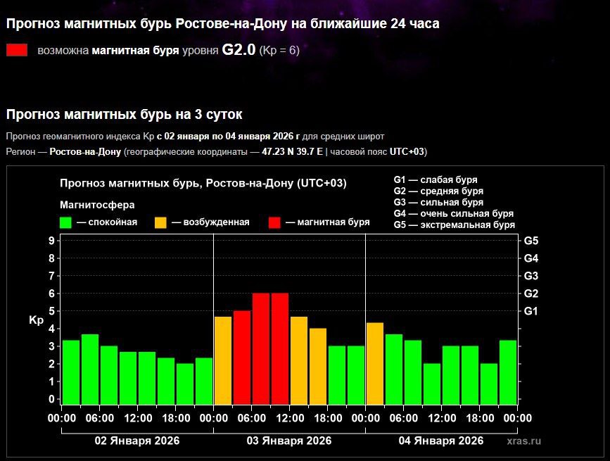 Первая магнитная буря 2026 года ожидается в ночь со 2 на 3 января