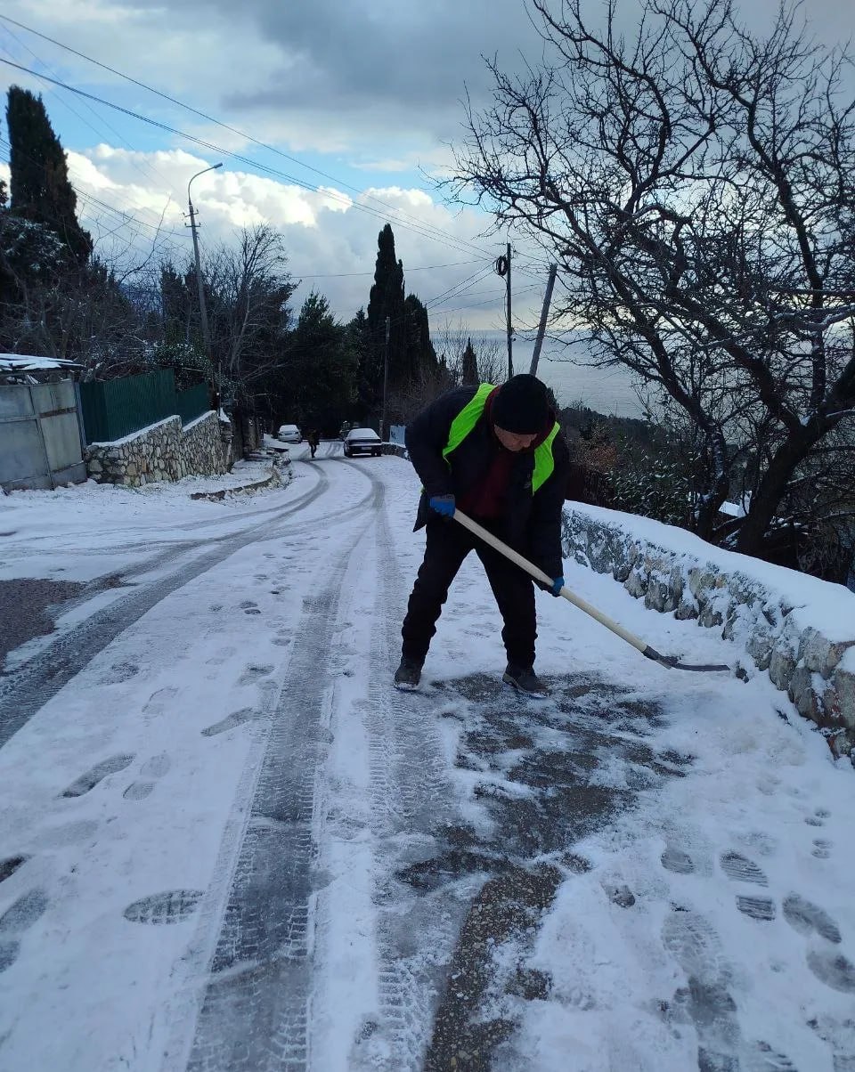 В Большой Ялте продолжают устранять последствия снегопада – спуски к Гурзуфу расчищают дорожники и подрядчики.