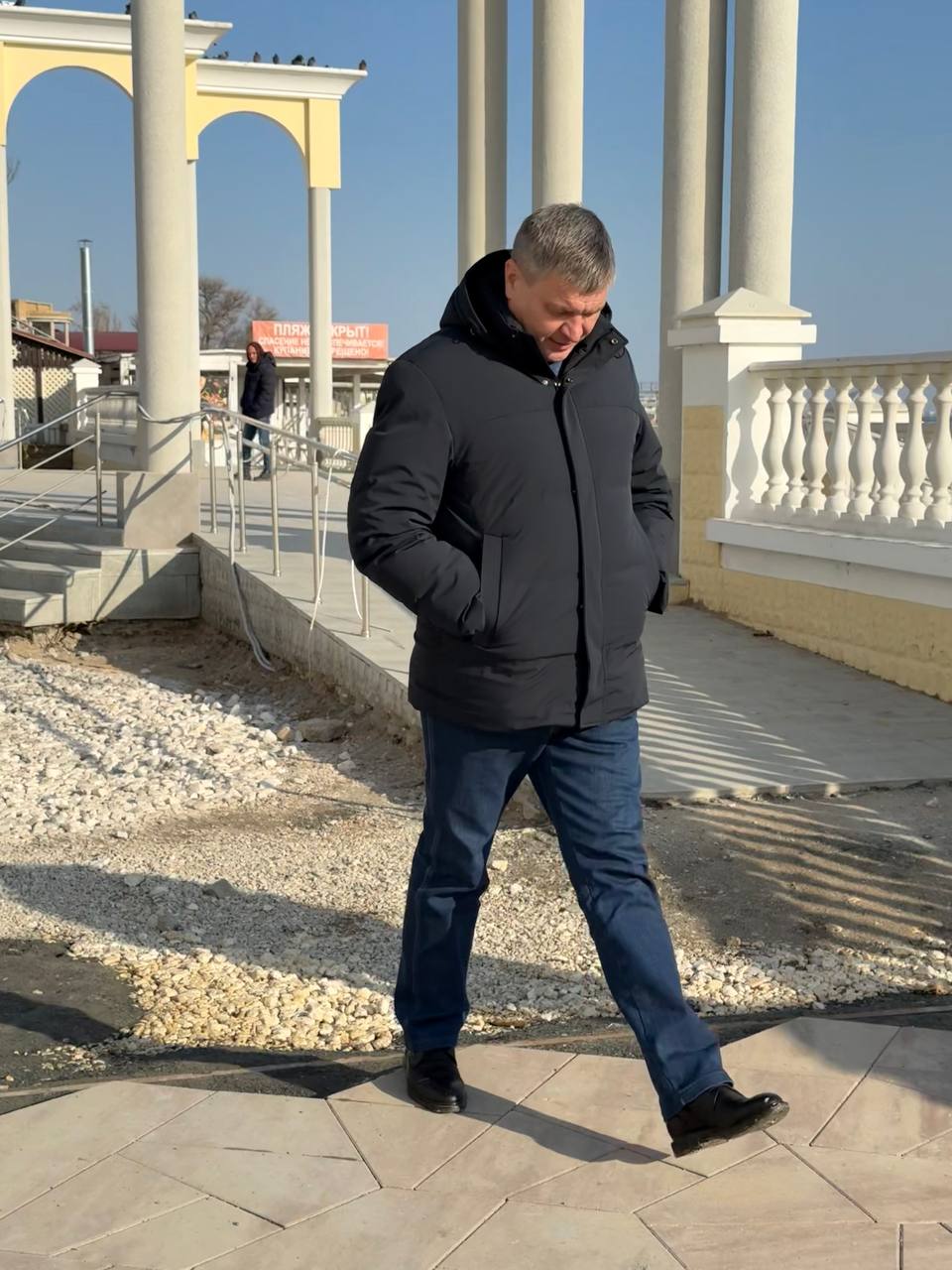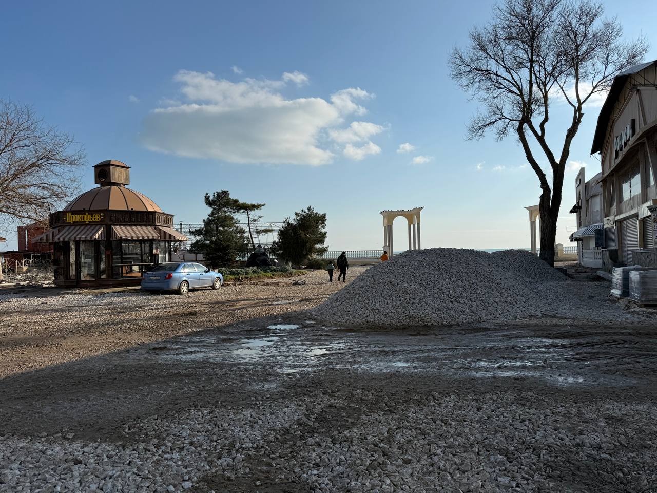 ход ремонта набережной им. Горького. Прошу евпаторийцев до завершения всех работ не гулять по набережной, сейчас это опасно, работает спецтехника;