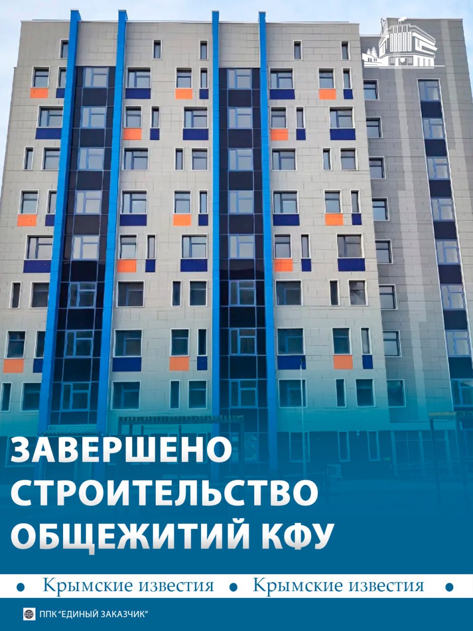 Новые общежития КФУ достроили в Симферополе. Это два здания на 250 и 450 мест. Заселять их будут в следующем учебном году.