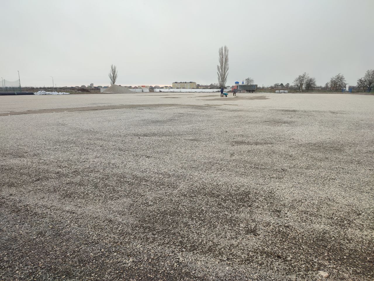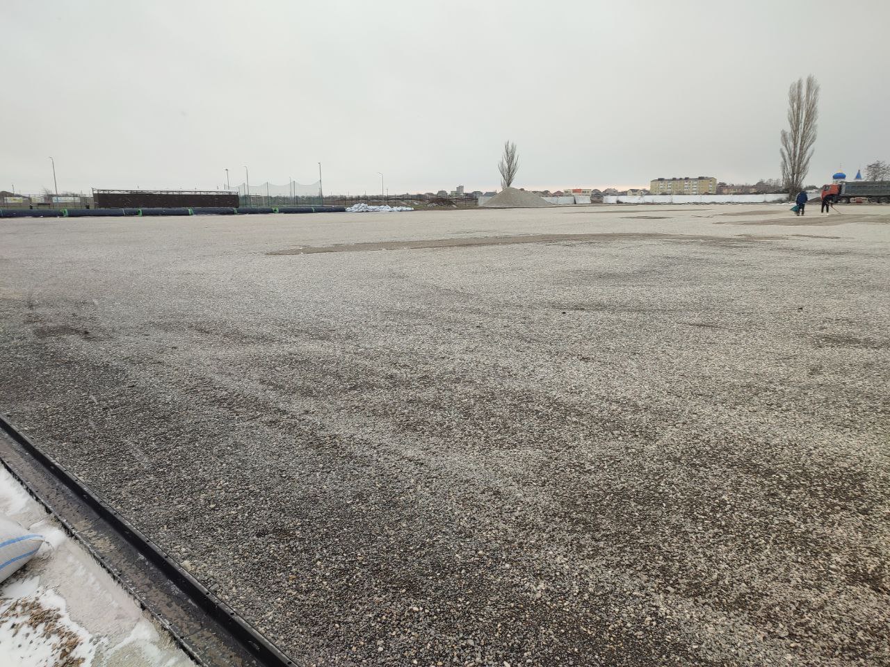 Как только погода установится окончательно, мы приступим к завершающему этапу — укладке качественного искусственного покрытия. Хочу подчеркнуть: все необходимые материалы уже на месте, ресурсов достаточно, и мы полностью сфокусированы на том, чтобы завершить объект в запланированные сроки.