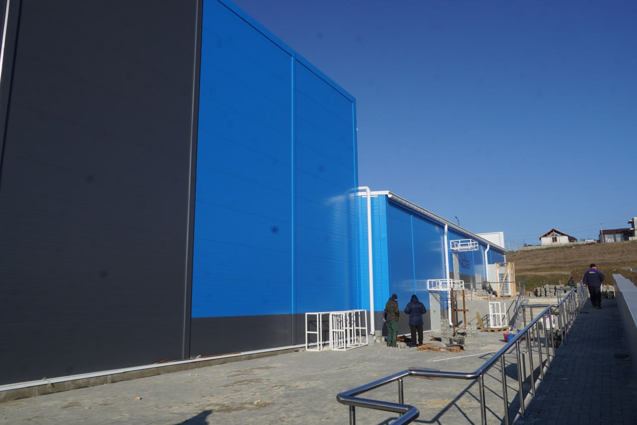 Уже завершены ключевые этапы строительства: смонтирован каркас административного корпуса и полностью выполнена внутренняя отделка. Ведется благоустройство территории.