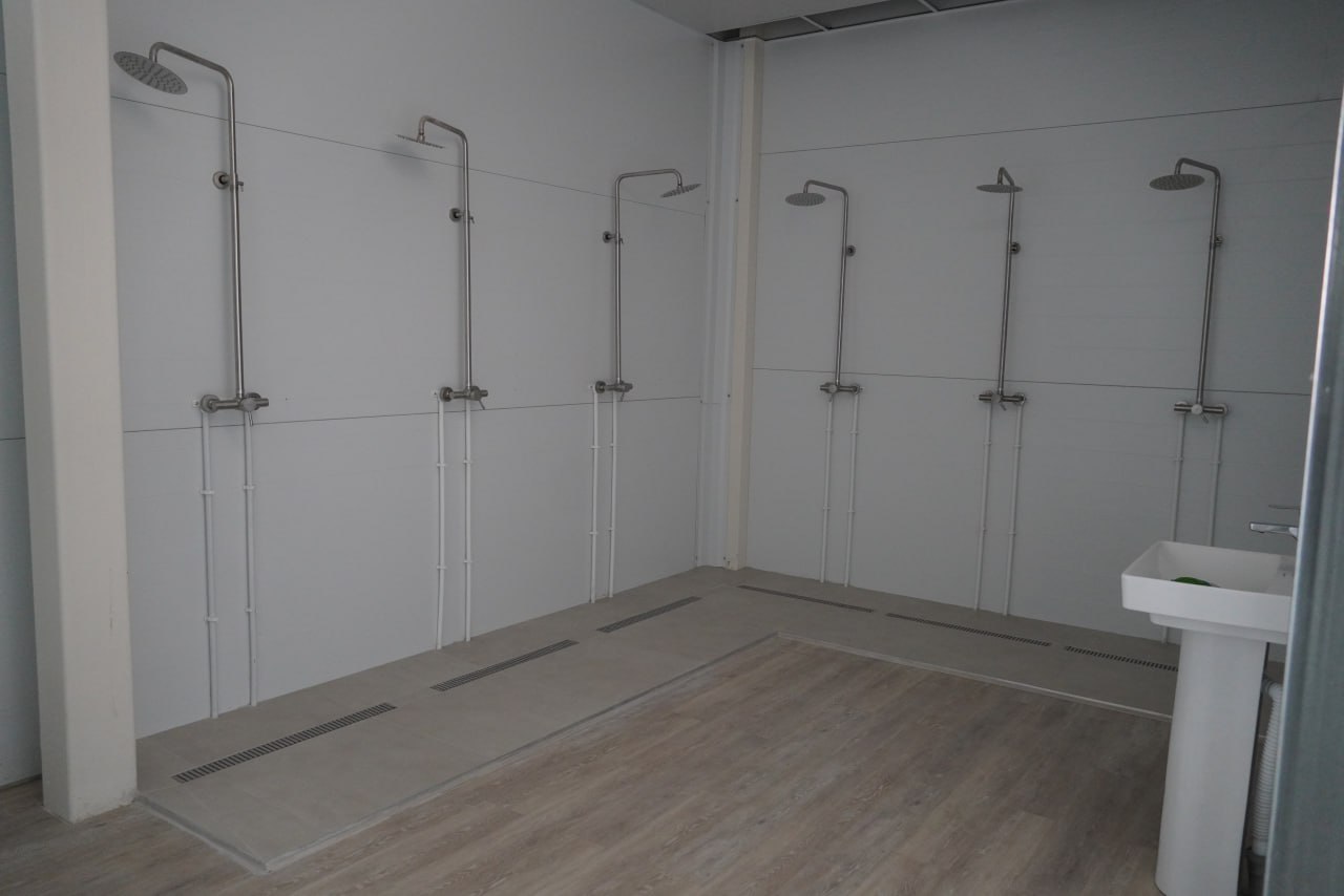 Спортивный комплекс состоит из чаши бассейна 25 м, тренировочного зала, раздевалки, медицинского кабинета и просторного холла. На объект завезена мебель и необходимое оборудование.