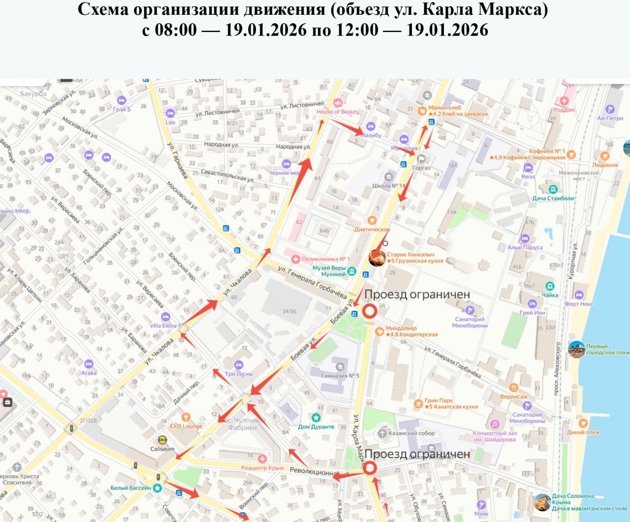 В связи с проведением богослужения в Казанском соборе 19 января с 8 до 12 часов будет ограничено движение транспорта по ул. К. Маркса от перекрестка с ул. Революционной до перекрестка с ул.Генерала Горбачева.
