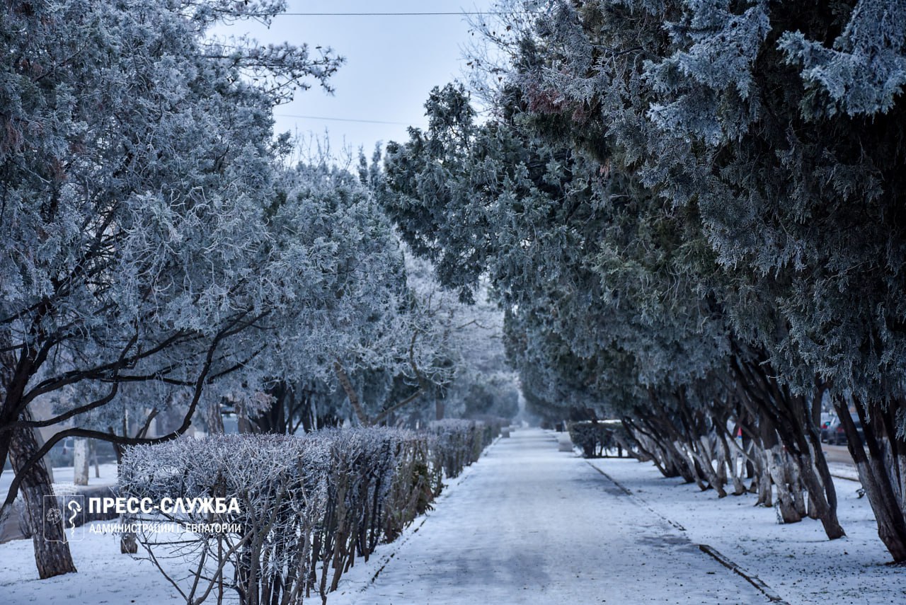 Зима продолжает радовать евпаторийцев своей волшебной красотой! В эти морозные дни природа подарила городу настоящее волшебство: деревья, окутанные серебристым инеем, словно облачились в кружевные наряды, а улицы обрели сказочный...