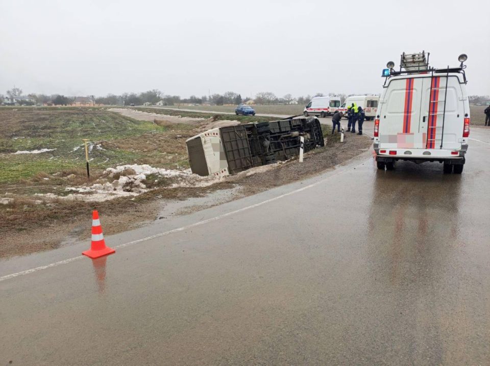 Автобус перевернулся в Черноморском районе: двое человек госпитализированы