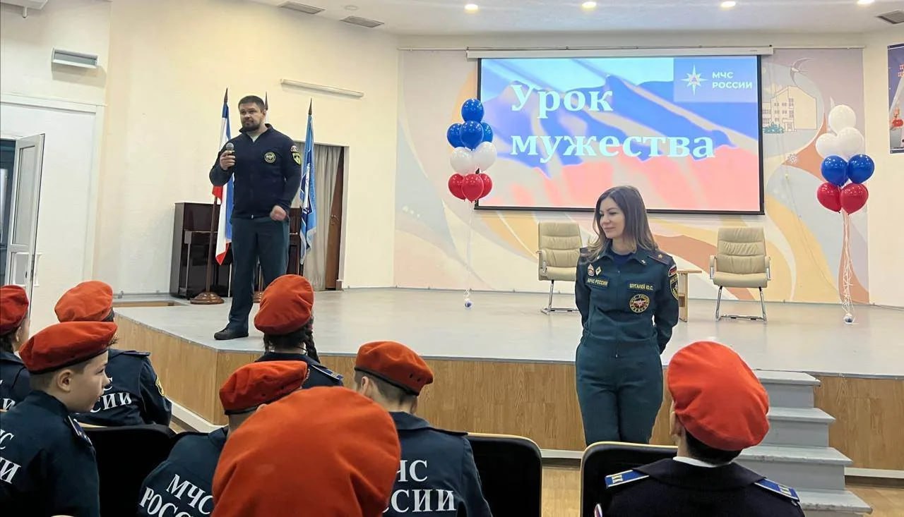 В Симферопольской академической гимназии прошёл урок мужества для кадет пожарно-спасательного профиля.
