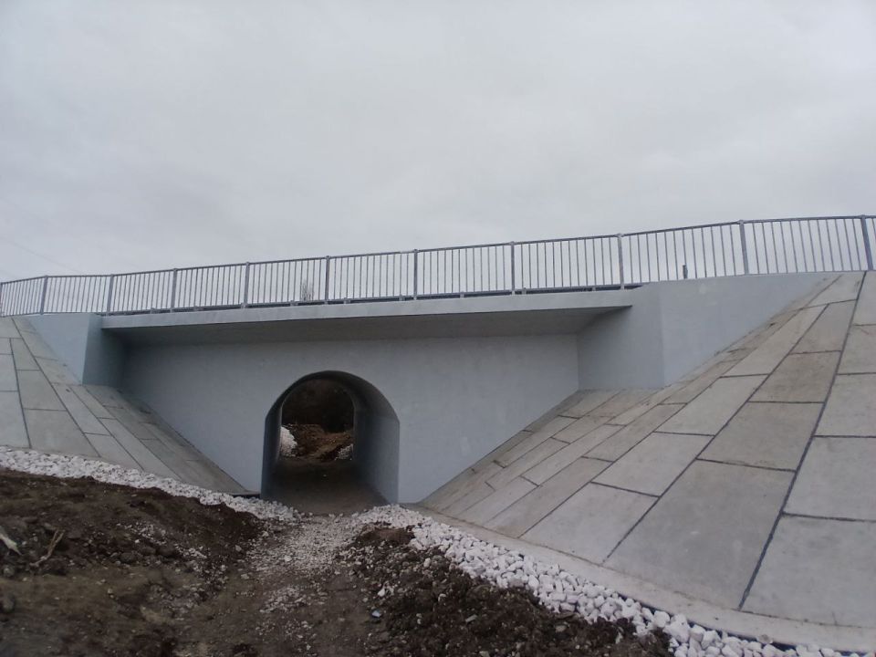 Были успешно проведены демонтажные работы, устройство разгрузочной плиты, возведение опор, установка бордюра и поребрика, а также укладка асфальтобетонного покрытия.