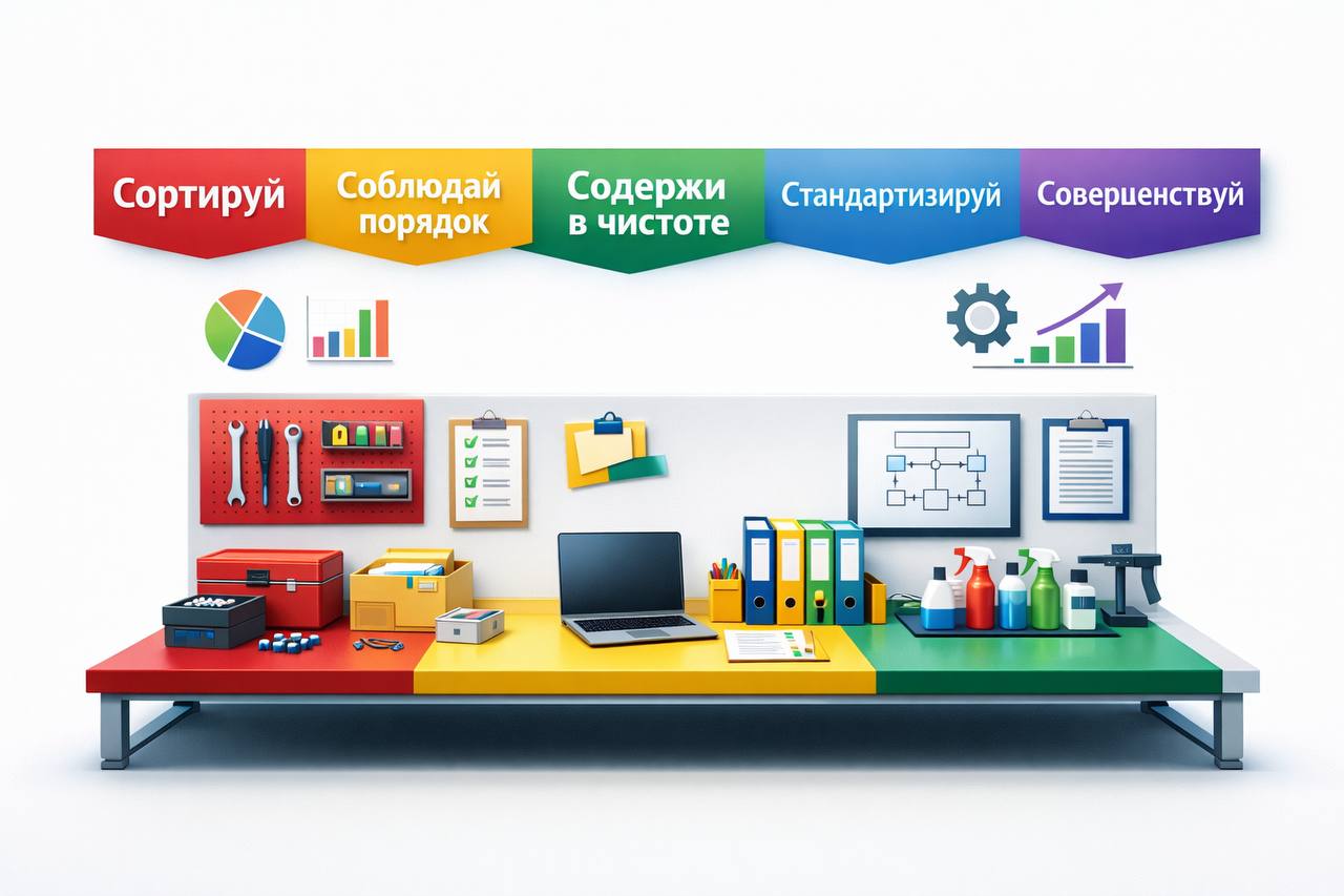 Система 5S представляет собой японскую методологию повышения эффективности производства путем оптимизации рабочей среды. Название системы связано с пятью японскими словами, начинающимися на букву «С»: Seiri, Seiton, Seiso, Seiketsu и Shitsuke. Каждая из них соответствует определенному этапу улучшения организации рабочего места.