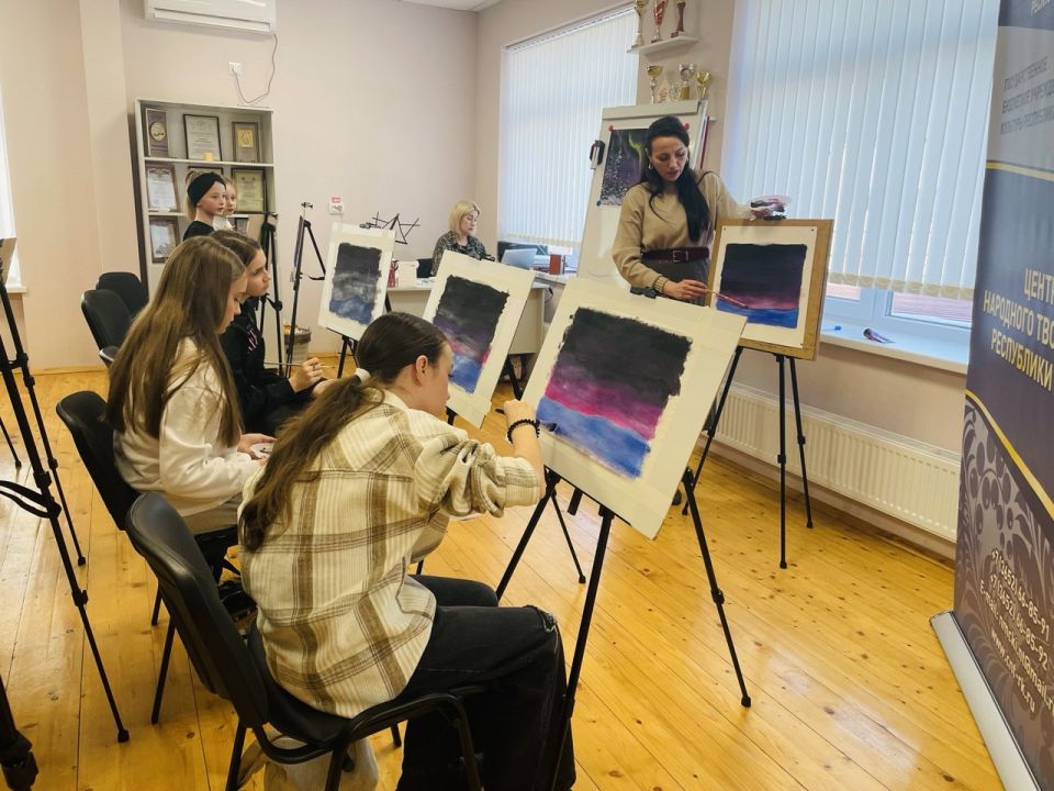 Провела мастер-класс по живописи акриловыми красками методист отделения культуры и народных ремесел ГБУКРК «ЦНТРК», художник Масалаб Виктория Вячеславовна.