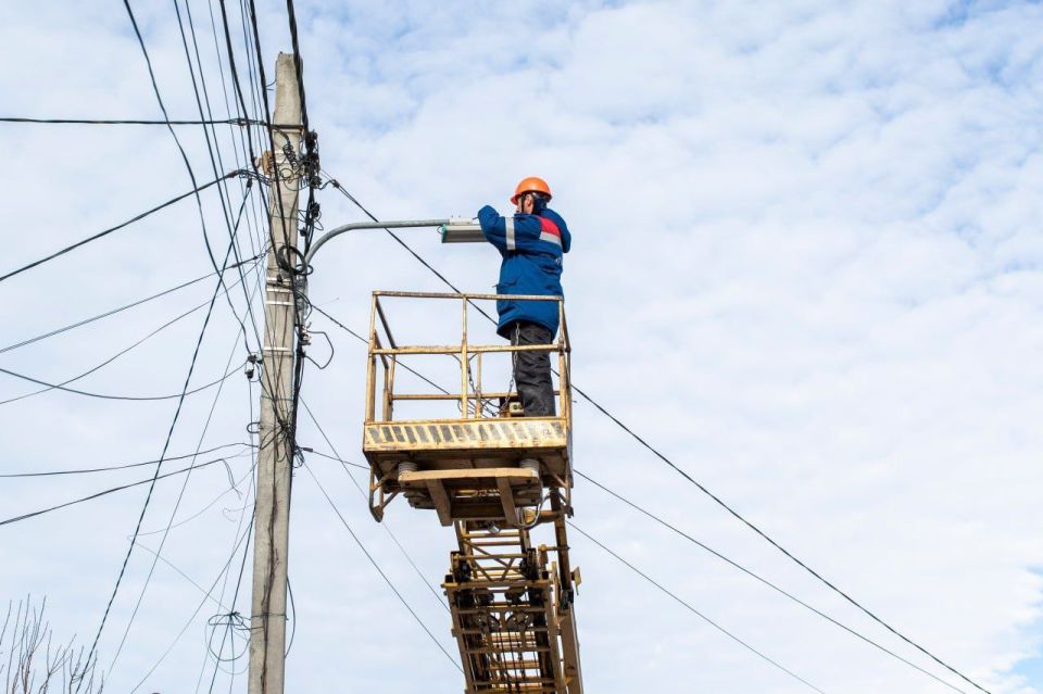 Специалисты МБУ «Горсвет» проводят ремонт линий наружного освещения и установку светильников на опорах электропередач на улицах Гражданская, Крымских Партизан, Титова, проспекта Победы, а также в поселке Комсомольское и микрорайоне «Фонтаны».