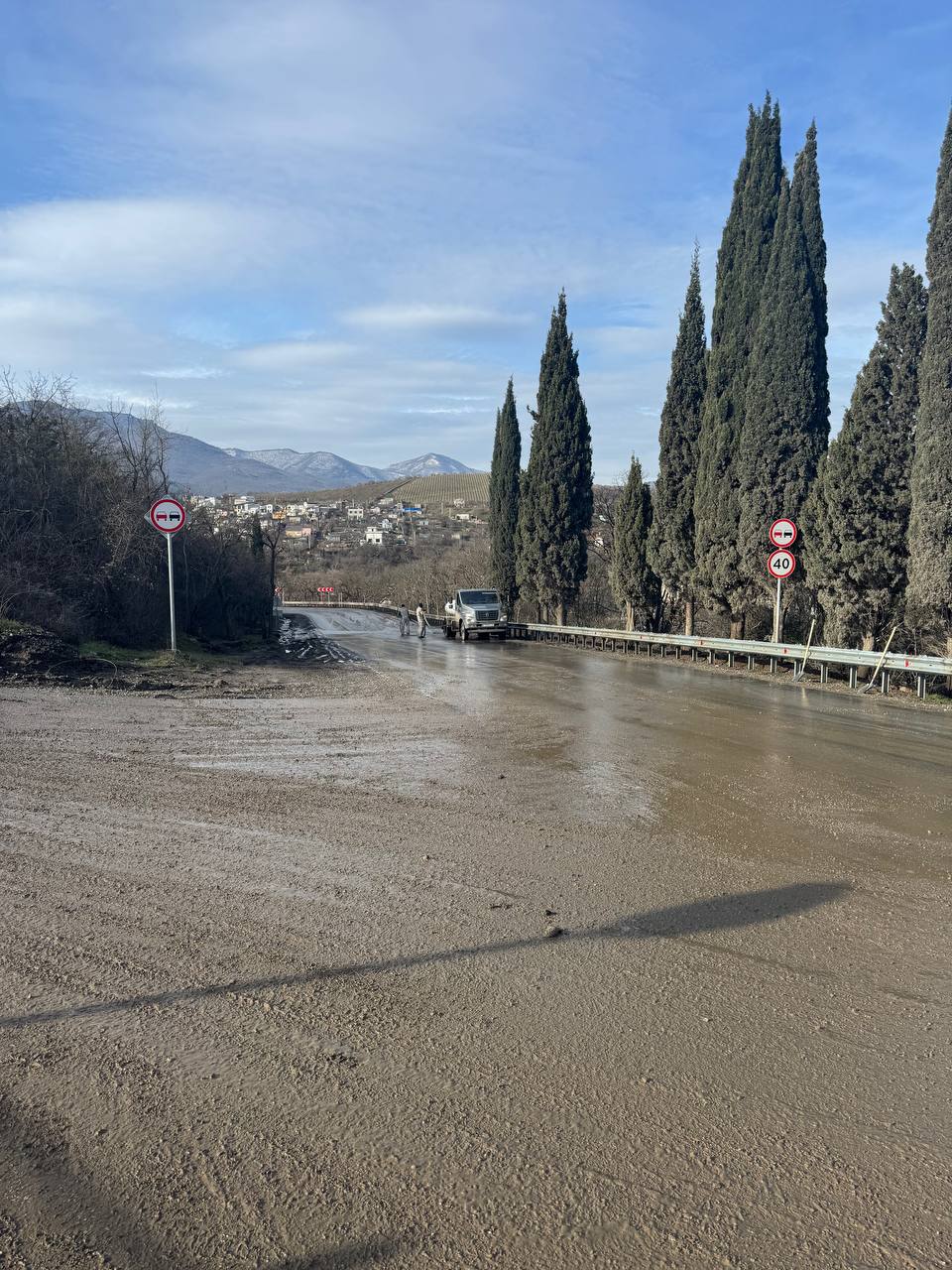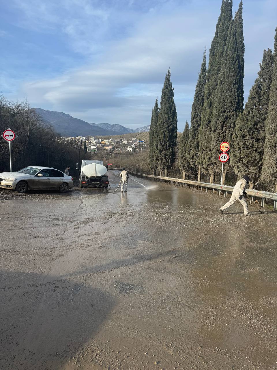 Осознавая значимость вопроса по загрязнению дорожного полотна по автомобильной дороге «Алушта-Судак, сегодня специалисты Администрации города оперативно выехали на место.