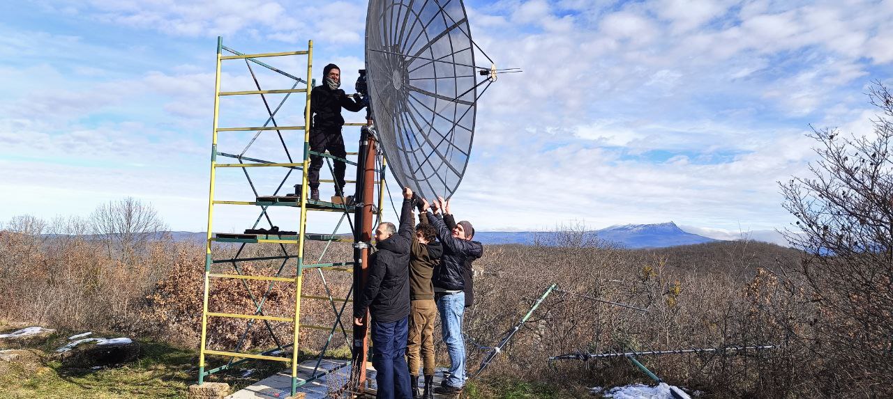 Для восстановления работоспособности наземной станции спутникового контроля, регламентных и обслуживающих работ на объект прибыли сотрудники ФГБОУ ВО «Московский государственный университет имени М.В. Ломоносова» Научно-исследовательский институт ядерной физики имени Д.В. Скобельцына. В рамках технического задания необходимо было установить новое поворотное устройство и осуществить монтаж антенных систем.