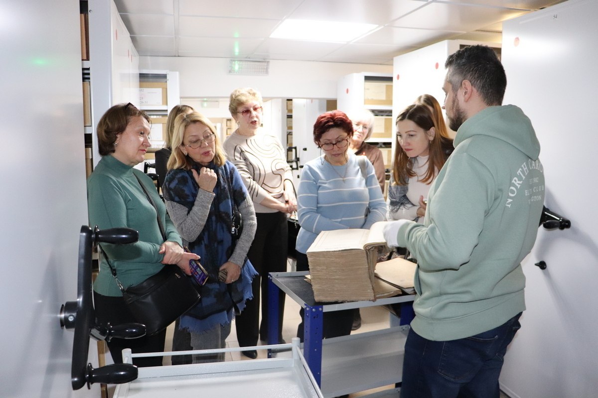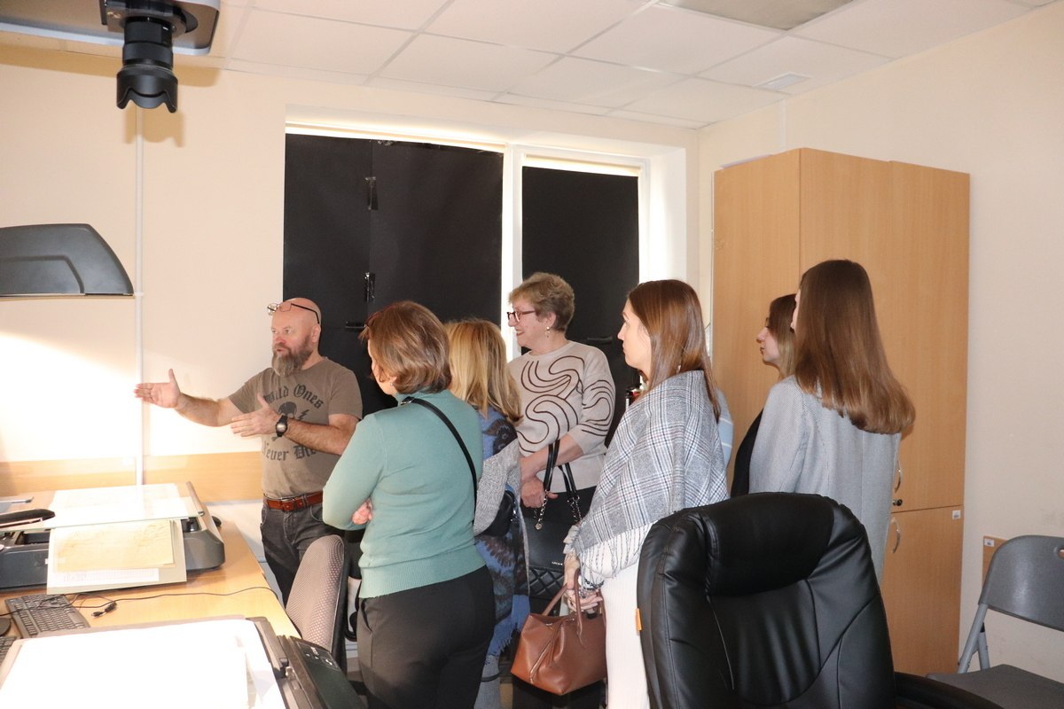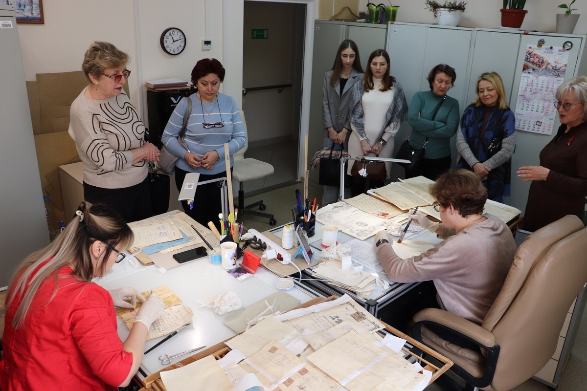 Создание электронного фонда пользования (ЭФП) архивными документами – одно из важнейших направлений работы Госархива, позволяющее выводить из оборота ежегодно около 2500 дел. Участники мероприятия смогли обсудить процесс оцифровки дел в лаборатории обеспечения сохранности архивных документов, а также увидеть в читальном зале использование цифровых копий ЭФП взамен оригиналов на бумажной основе.