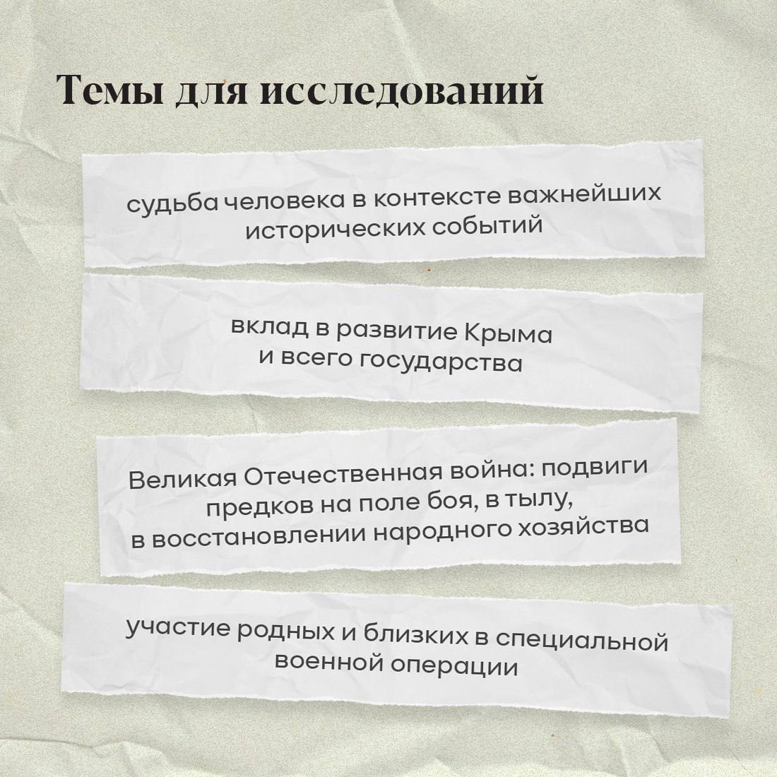 Обязательно ознакомьтесь с положением о конкурсе и требованиями к оформлению работ на портале «Архивы Республики Крым» https://krymgosarchiv.ru/ в рубрике «Конкурсы Госкомархива».