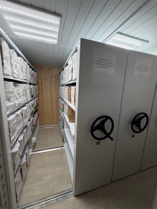 Особое внимание было уделено архивному помещению. Это модульное сооружение, введенное в эксплуатацию в 2025 году специально для размещения архива Ленинского судебного района. Благодаря мобильным стеллажам, эффективная площадь хранения документов увеличилась в 2-2,5 раза.