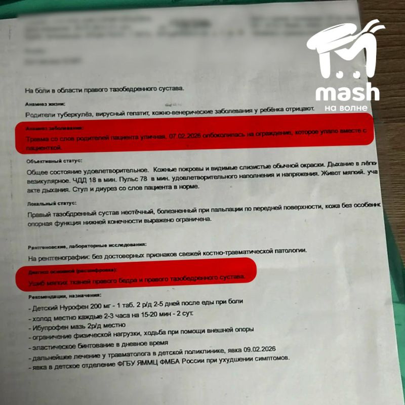 11-летняя девочка гуляла с друзьями, облокотилась на забор и вместе с ним рухнула вниз. Папа сразу повёз дочку в больницу, там ей диагностировали ушиб мягких тканей таза. На следующий день ребёнок упала в обморок — врачи считают, что из-за стресса.