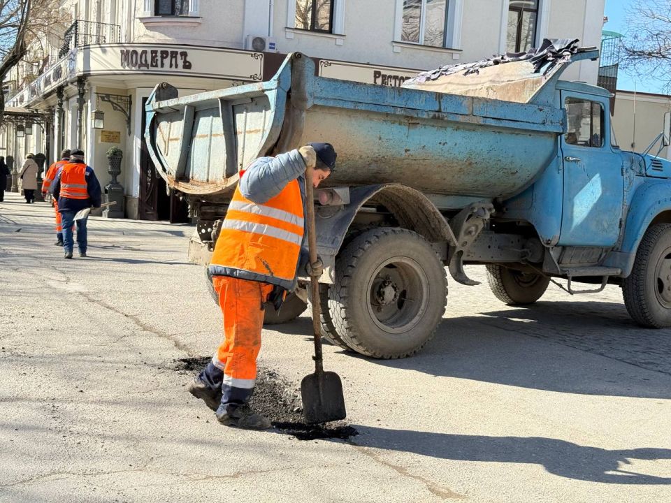 В этом году зима в Евпатории была холодной, выпало большое количество осадков. Это негативно отразилось на состоянии наших дорог, поэтому сейчас исправляем ситуацию.