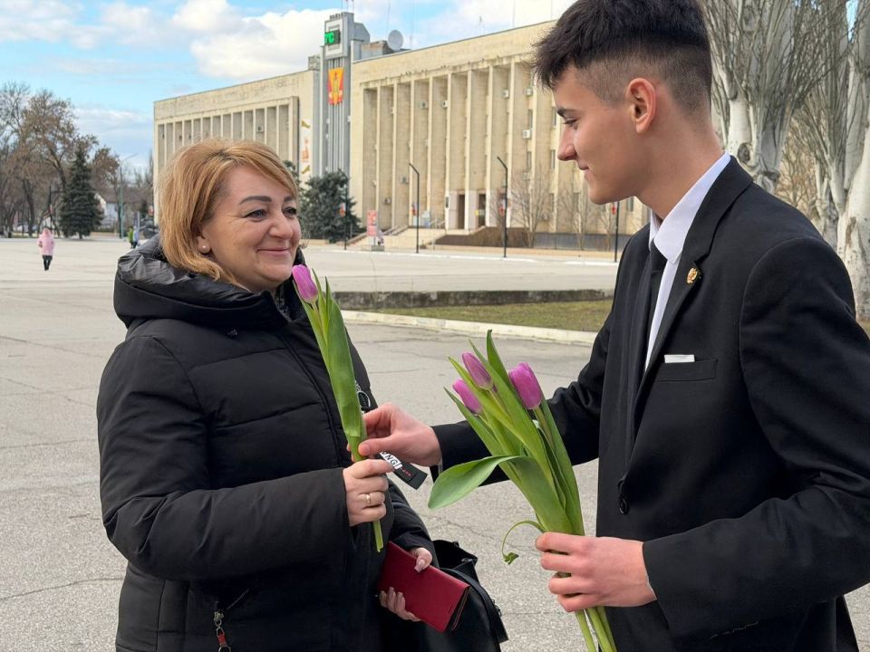 Сегодня парни из различных молодежных движений вышли на улицы своих городов и населенных пунктов, чтобы выразить теплые чувства и подарить девушкам цветы.