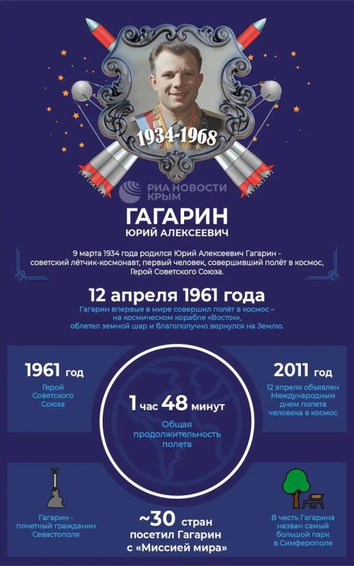 12 апреля 1961 года ему было суждено стать первооткрывателем космоса. На околоземной орбите в корабле "Восток-1" он провел 108 минут, после чего его имя было навсегда вписано в историю.