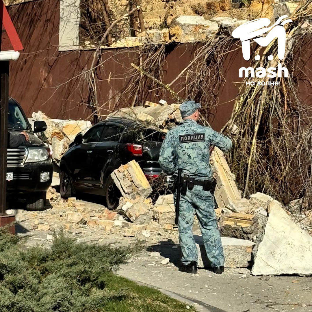 Подпорная стена упала на машину в Симферополе. Людей в салоне не было.