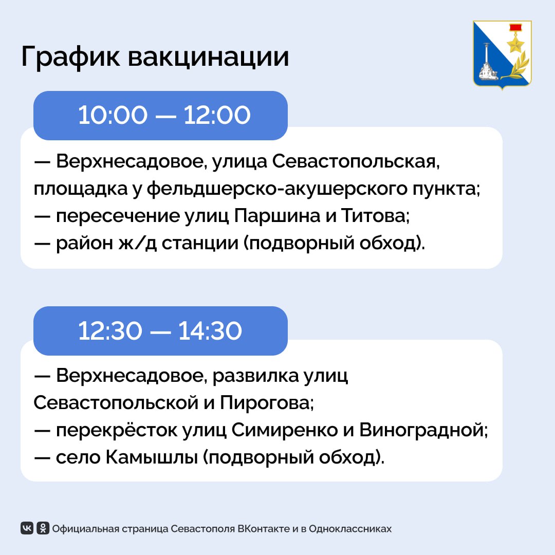 Следующая вакцинация пройдёт в субботу, 21 марта, в Нахимовском районе. Подробное расписание — в карточке.