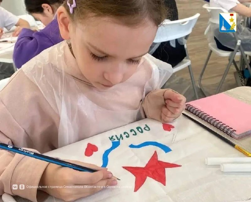 В центре «Бухта Казачья» прошёл мастер-класс, приуроченный к 12-й годовщине Русской весны. Участница программы «Севастополь — город героев» Дарья Кривопалова и воспитанники студии «Любоморье» создали салфетки для наших защитников.