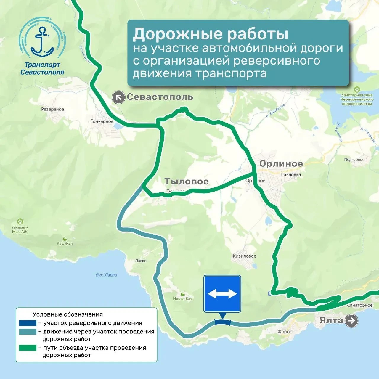 На участке дороги «Ялта — Севастополь» действует реверсивное движение