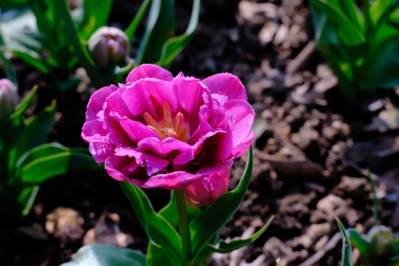 Интересно, что всего тюльпаны на нашей планете делят на 15 классов, а в НБС можно увидеть 8 из них. Впечатляет! 60% всей коллекции принадлежат к классу Триумф, это классика, крупные бокаловидные цветы с прочными высокими стеблями (до 70 см). Они устойчивы к неблагоприятным погодным условиям, а после срезки долго сохраняют декоративность
