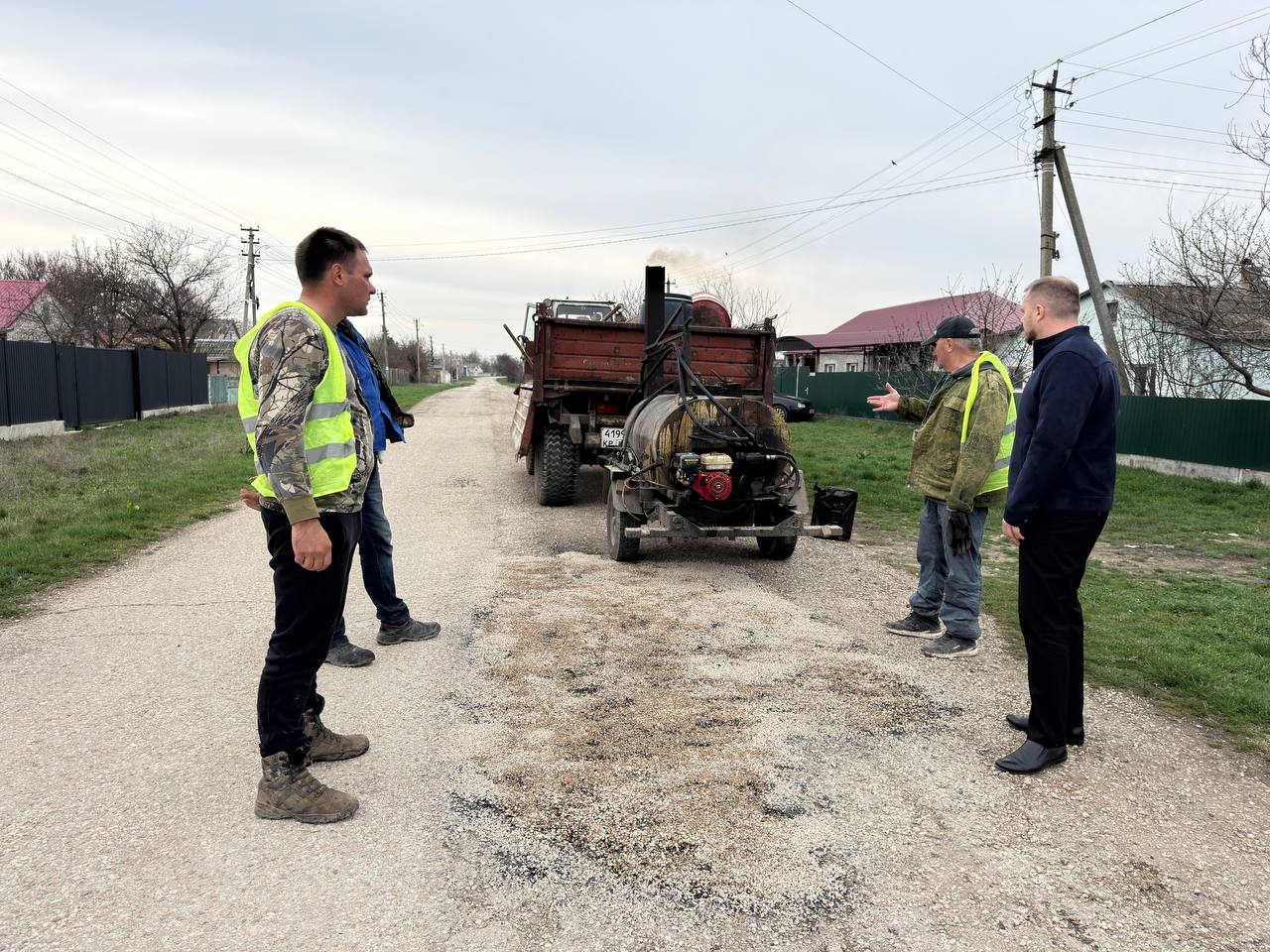 Провел мониторинг хода работ, сейчас мероприятия по ямочному ремонту ведутся в с.Ястребки. Всего запланировано на 1 этап ямочного ремонта в Нижнегорском районе 73 дороги. Уже выполнены работы на 30 объектах.
