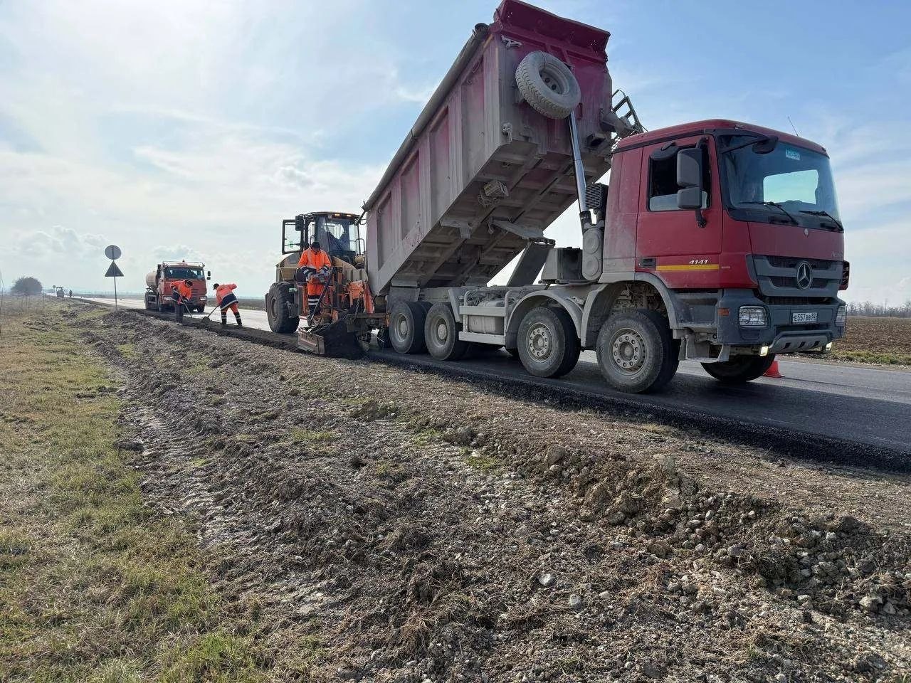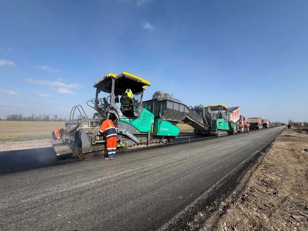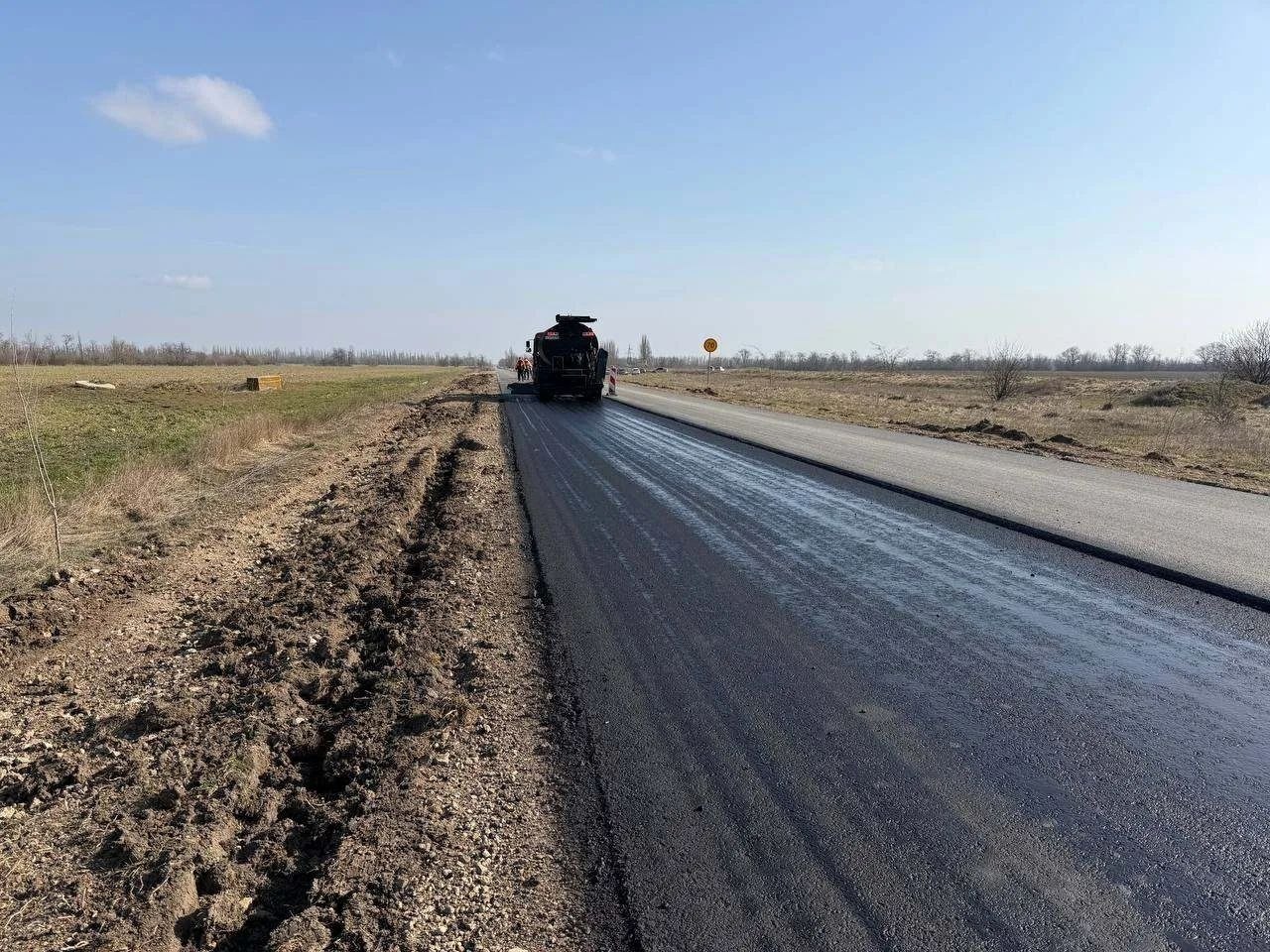 На автодороге Кировское — Приветное приступили к укладке верхнего слоя асфальта