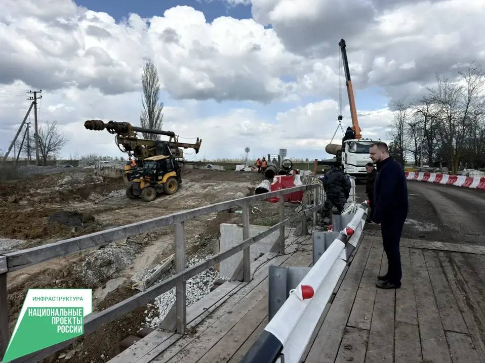 В настоящее время ведутся работы для монтажа буронабивных свай. Далее будут проведены мероприятия по бурению и укладке бетонной смеси на крайнюю опору. Такие же работы проведут для второй опоры. Данные сваи станут основной опорной конструкцией будущего моста
