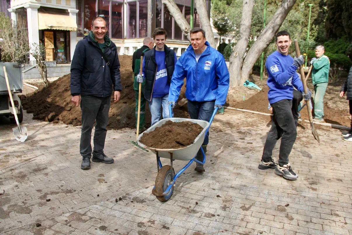 Первым этапом планируется высадить 3,600 растений. Сегодня дружной командой «Единой России», Общественного совета, Детей войны, «Молодой Гвардии Единой России» под чутким руководством профессионалов своего дела МБУ «Зеленстрой» высадили 20 пальм разных видов – есть очень экзотические для нашей климатической зоны. Большое количество живых изгородей – лавровишню, калину, тис ягодный. От ялтинцев неоднократно поступал запрос на розы. Высадили 700 кустарников роз разных сортов и разных цветов – парковые, бордюрные, садовые, мускусные от нежно-розовых до фиолетовых.