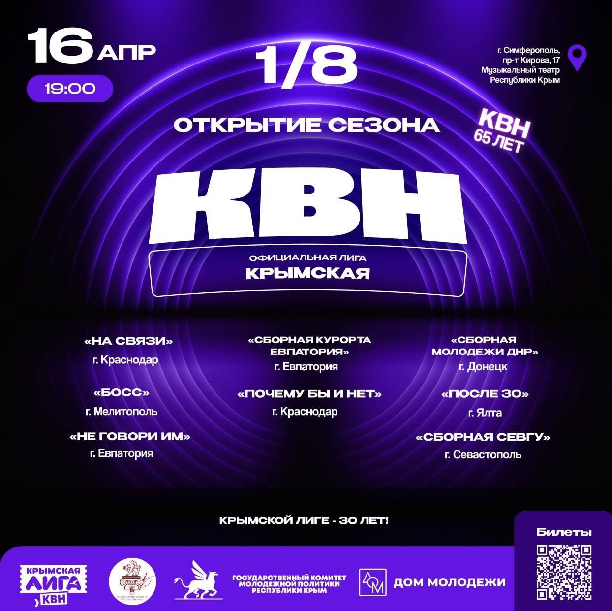 Уже 16 апреля состоится игра 1/8 финала, которая даст начало новому яркому сезону. На сцене Государственного академического музыкального театра Республики Крым встретятся как опытные команды, так и амбициозные новички.