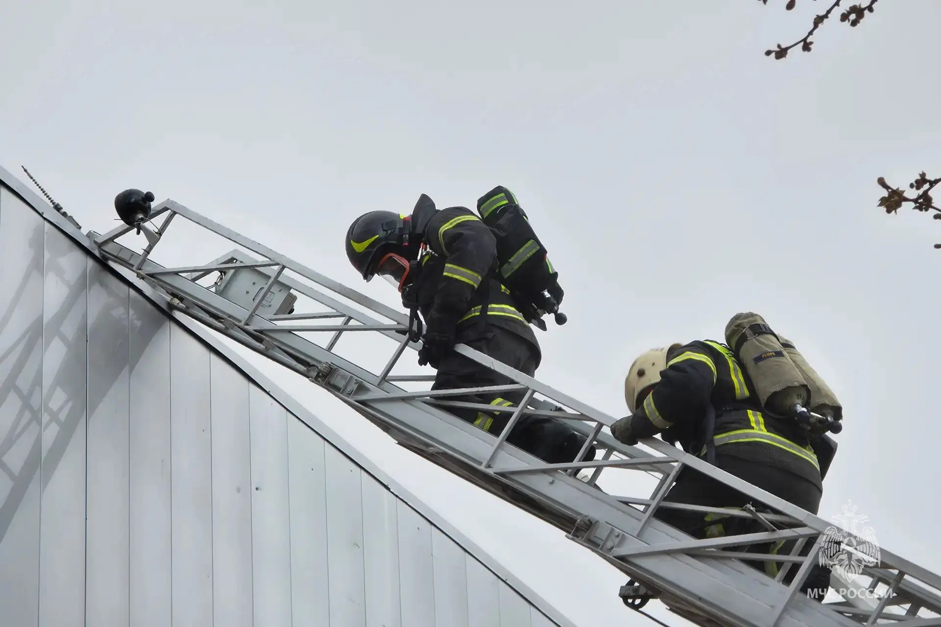 Прибывшие пожарные эвакуировали десятерых посетителей, нашли очаг возгорания, подали стволы на тушение и отработали сценарий спасения коллег из-под завалов. Также тушили условный огонь на кровле с помощью автолестницы.