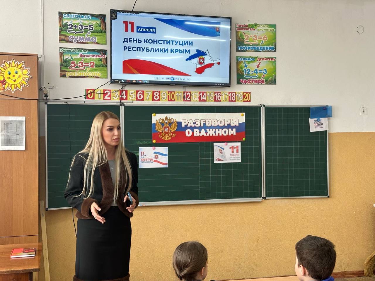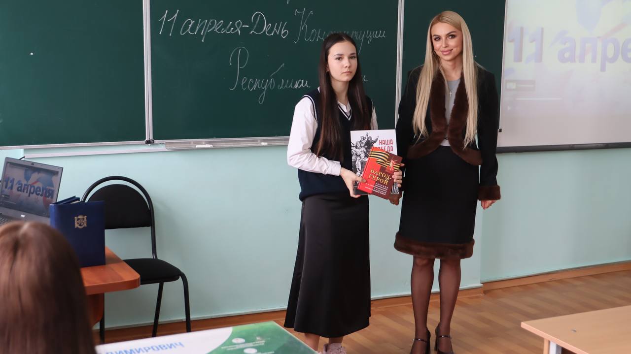 Старшеклассникам рассказали о Дне Конституции Республики Крым, истории принятия Основного Закона, правах и обязанностях граждан. В конце урока вручила школе книги об освобождении Симферополя — для пополнения библиотечного фонда.