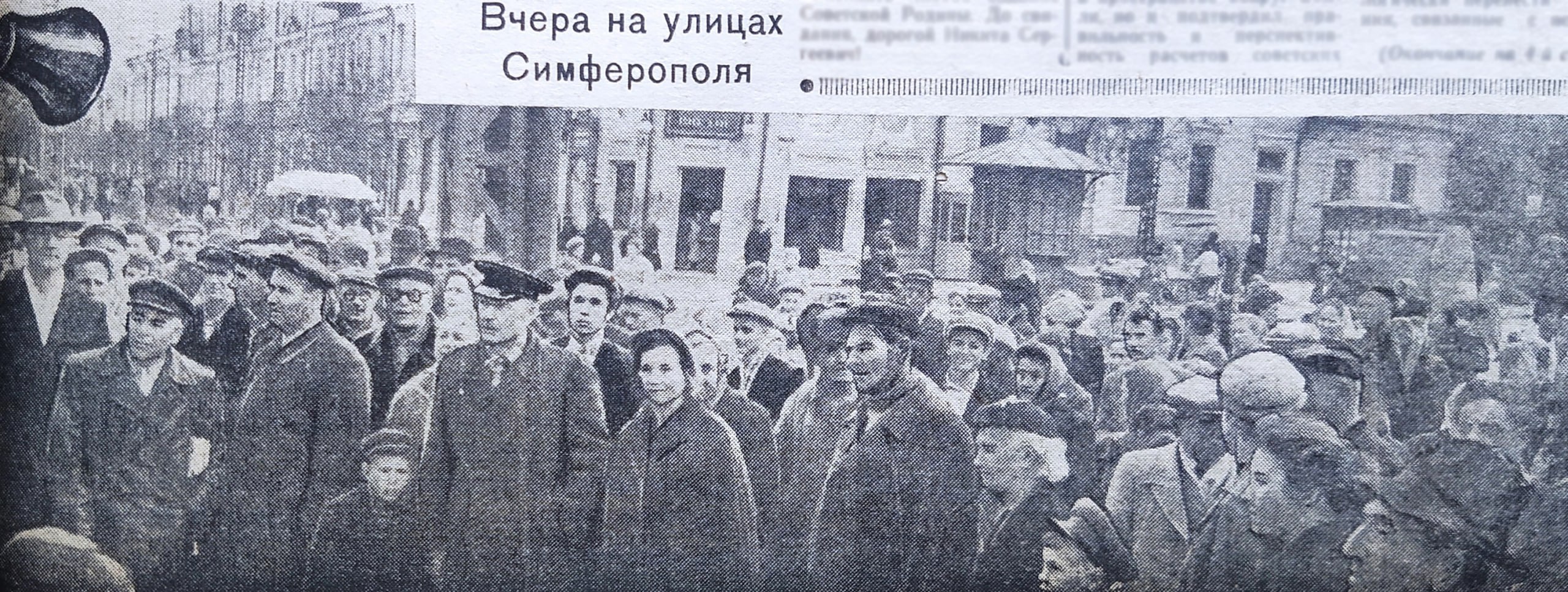 1-3. Симферопольцы слушают сообщение ТАСС: на улице; в железнодорожном техникуме; на заводе «Сельхоздеталь».