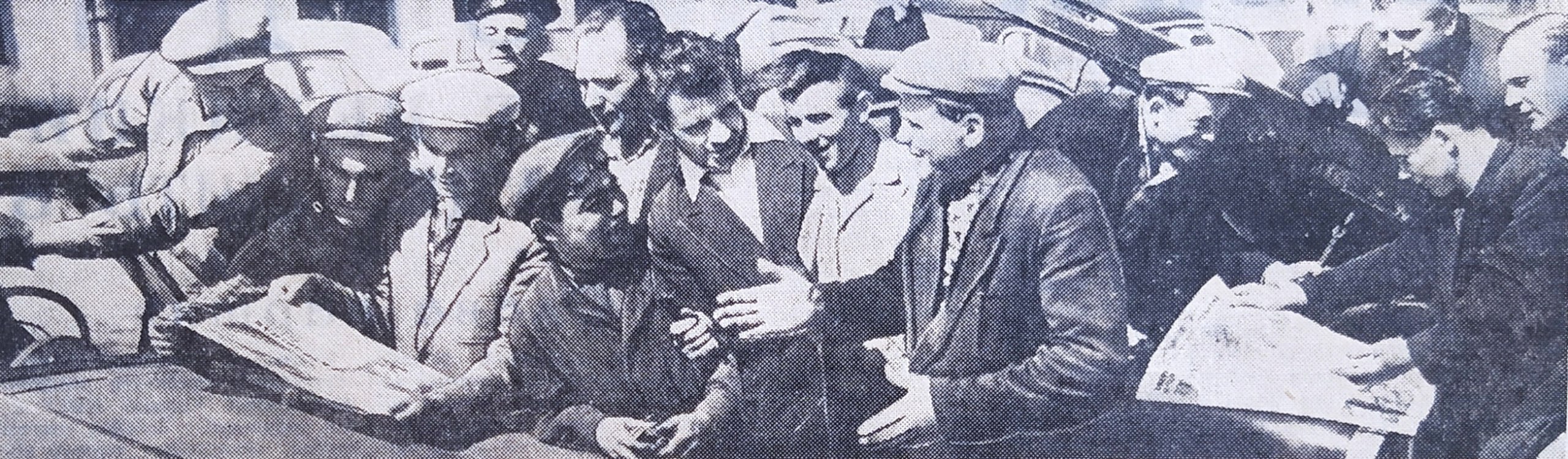 4. Жители города у газетной витрины утром 13 апреля 1961 года.