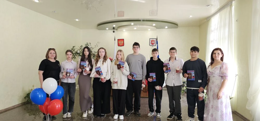 Торжественная церемония вручения главного документа гражданина Российской Федерации прошла для Дениса Ефимчука, Елены Федоровой, Юлии Гадийчук, Станислава Любова, Беляла Фазилова, Асие Абдурахимовой, Кристины Люлько и Руслана Мустафаева.