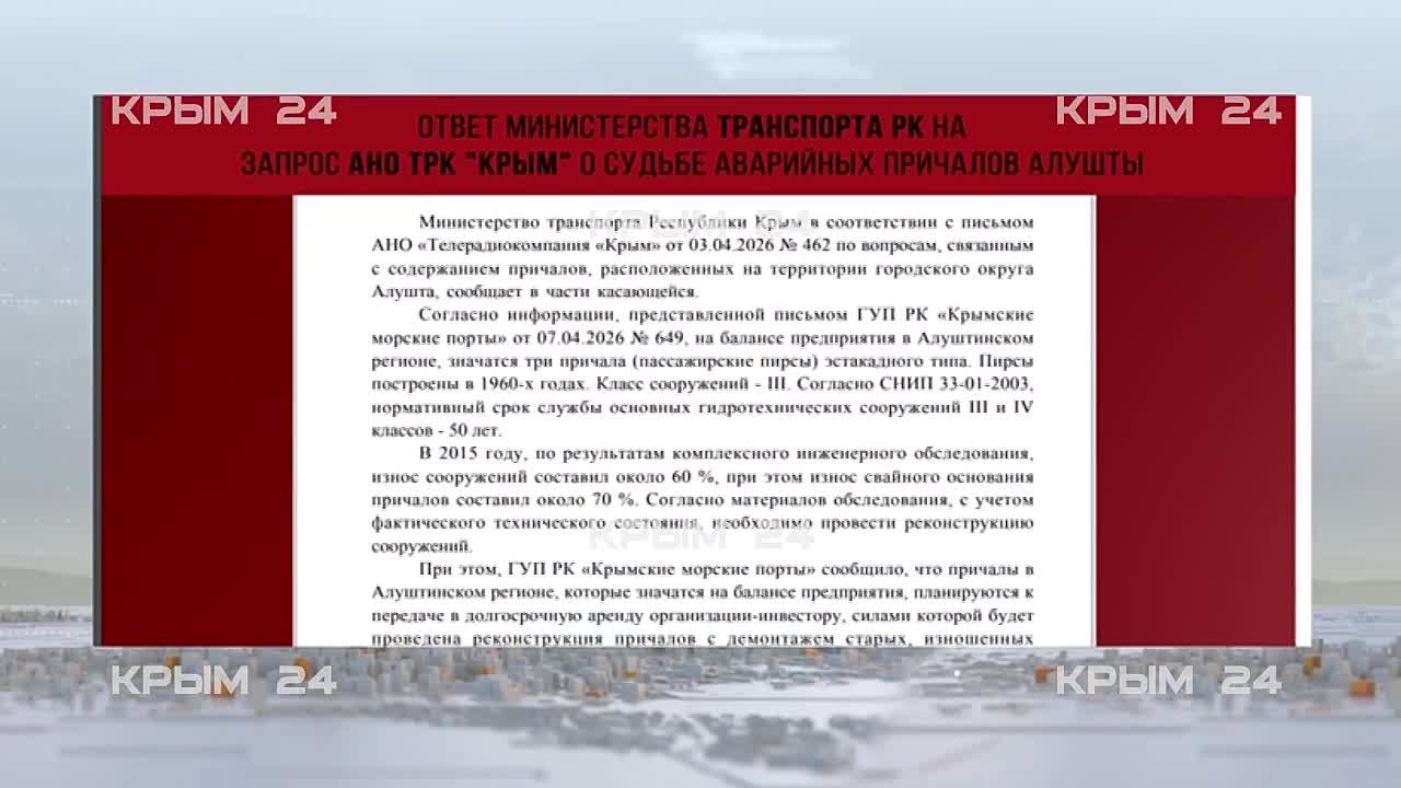 Об этом нам сообщили в Министерстве транспорта Республики Крым. Сооружения на Центральной набережной, в Профессорском Уголке и селе Малореченском возводили в 60-х. Срок службы пристаней — 50 лет. В 2015 году специалисты выявили разрушения верхних частей на 60%, а оснований — на 70%. Прибрежные объекты планируют отдать в долгосрочную аренду, их реконструирует социально ответственный партнёр. На первом этапе снесут изношенные элементы.