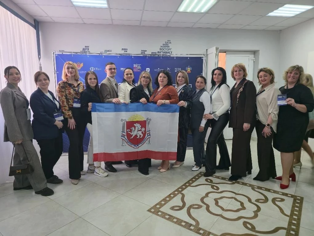 Особый интерес вызвала делегация из Республики Крым, куда вошли 15 педагогов нашего полуострова. Сейтхалиева Нурие Ремзиевна, учитель начальных классов МБОУ "Червонновская средняя школа", победитель муниципального и участник регионального этапа конкурса "Лучший классный руководитель 2025", представляла на Форуме образование Сакского района.