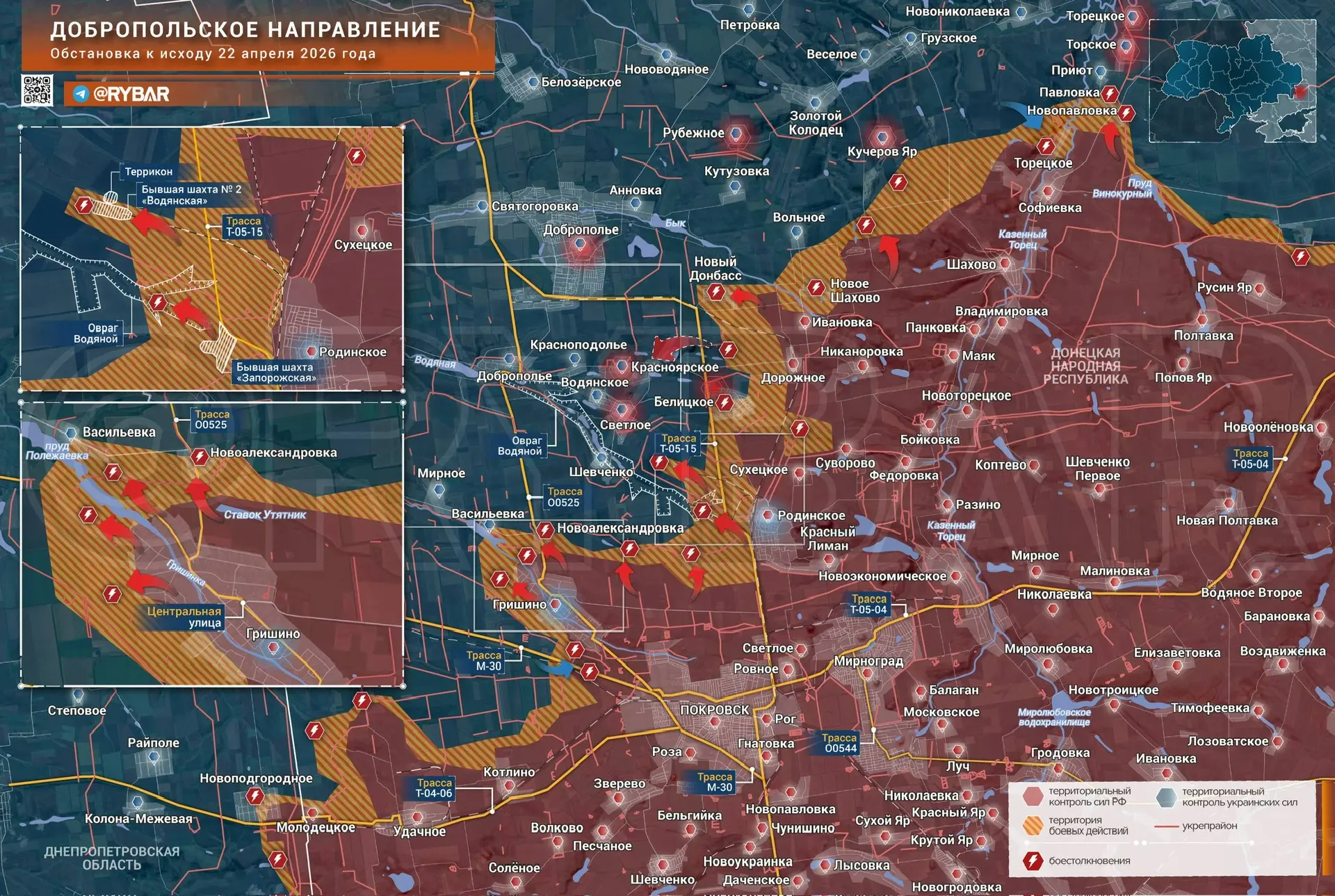 С Добропольского направления поступила информация об освобождении Гришино. Территория села зачищена от противника, однако окраины пока остаются в «серой зоне» ввиду контроля ВСУ над цепью опорных пунктов у трассы М-30.