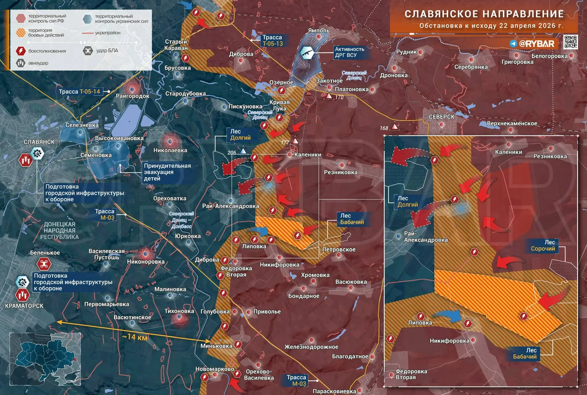 На Славянском направлении штурмовики ГВ «Юг» зачистили лесополосы на подступах к Рай-Александровке, а также зашли на окраины самого села. Параллельно с этим продолжаются бои в «кармане» у Никифоровки.