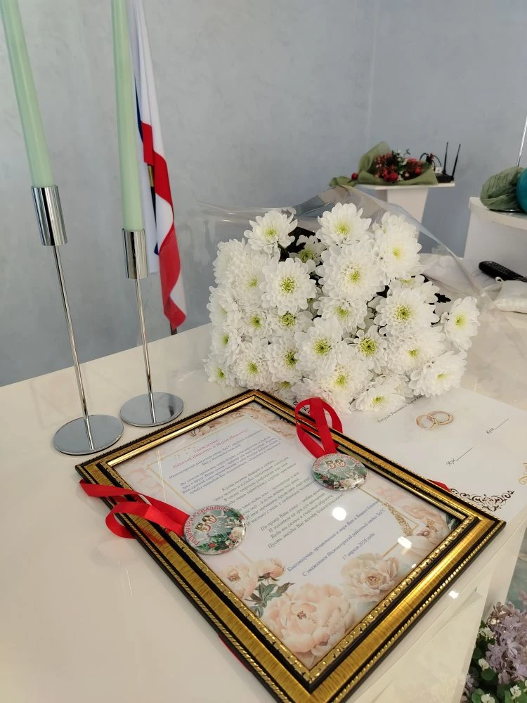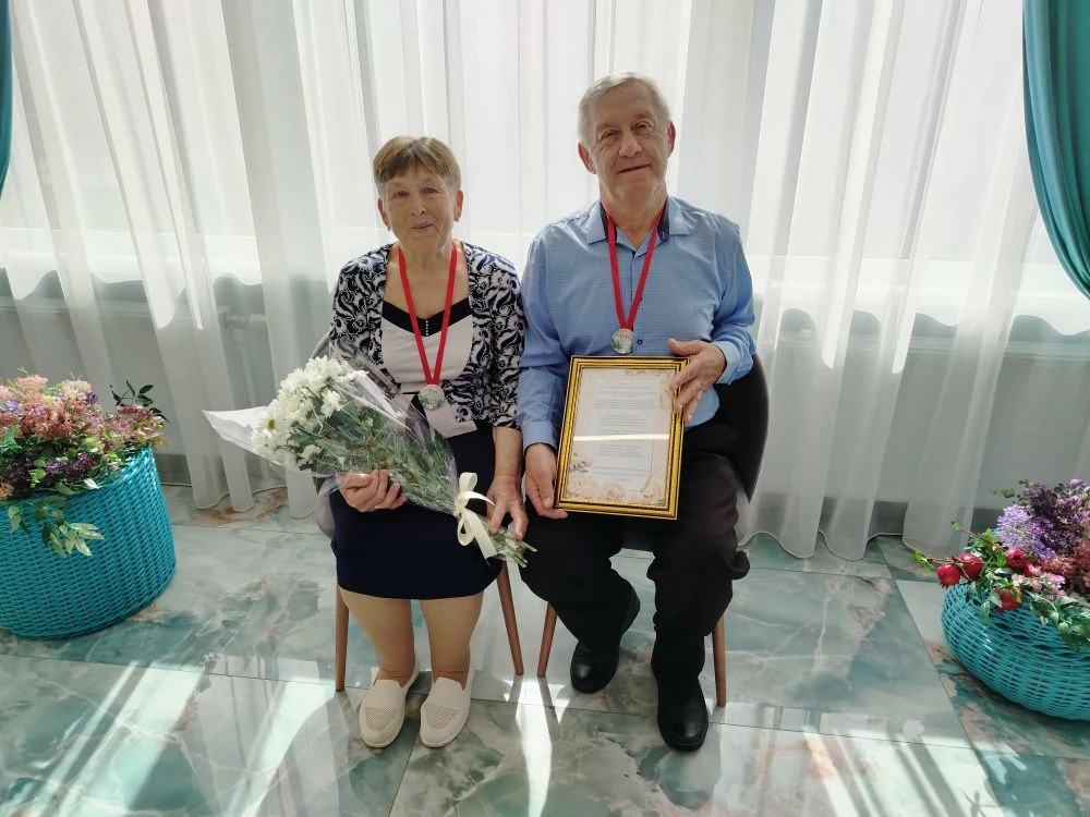 Сотрудники отдела ЗАГС тепло поздравили юбиляров, вручив им цветы, памятные медали и адрес в фоторамке. Они подчеркнули, что построить и, главное, сохранить такую крепкую семью, где до сих пор царят любовь и нежность, – это огромный труд двоих. Такие пары служат примером для подражания, и у них можно учиться мудрости и искусству семейной жизни.
