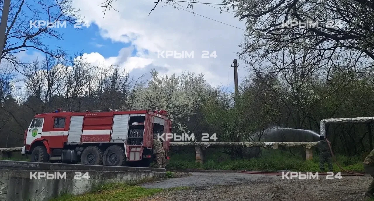 Сегодня в селе Ферсманово спасатели отрабатывали действия при лесном пожаре, который угрожал ГБОУ РК «Лозовская специальная школа-интернат». По легенде, огонь распространялся в сторону учреждения.