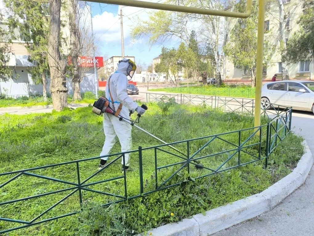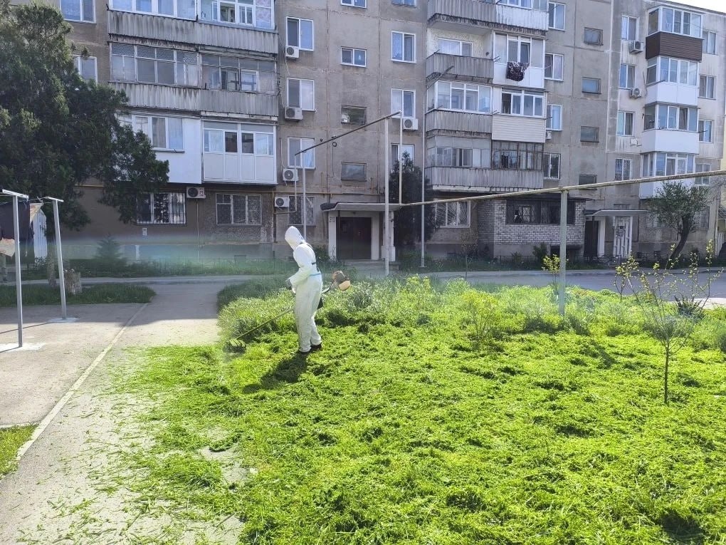 • Наряду с ремонтными работами, УК регулярно проводят уборку придомовых территорий, а также приступили к сезонному покосу молодой травы.