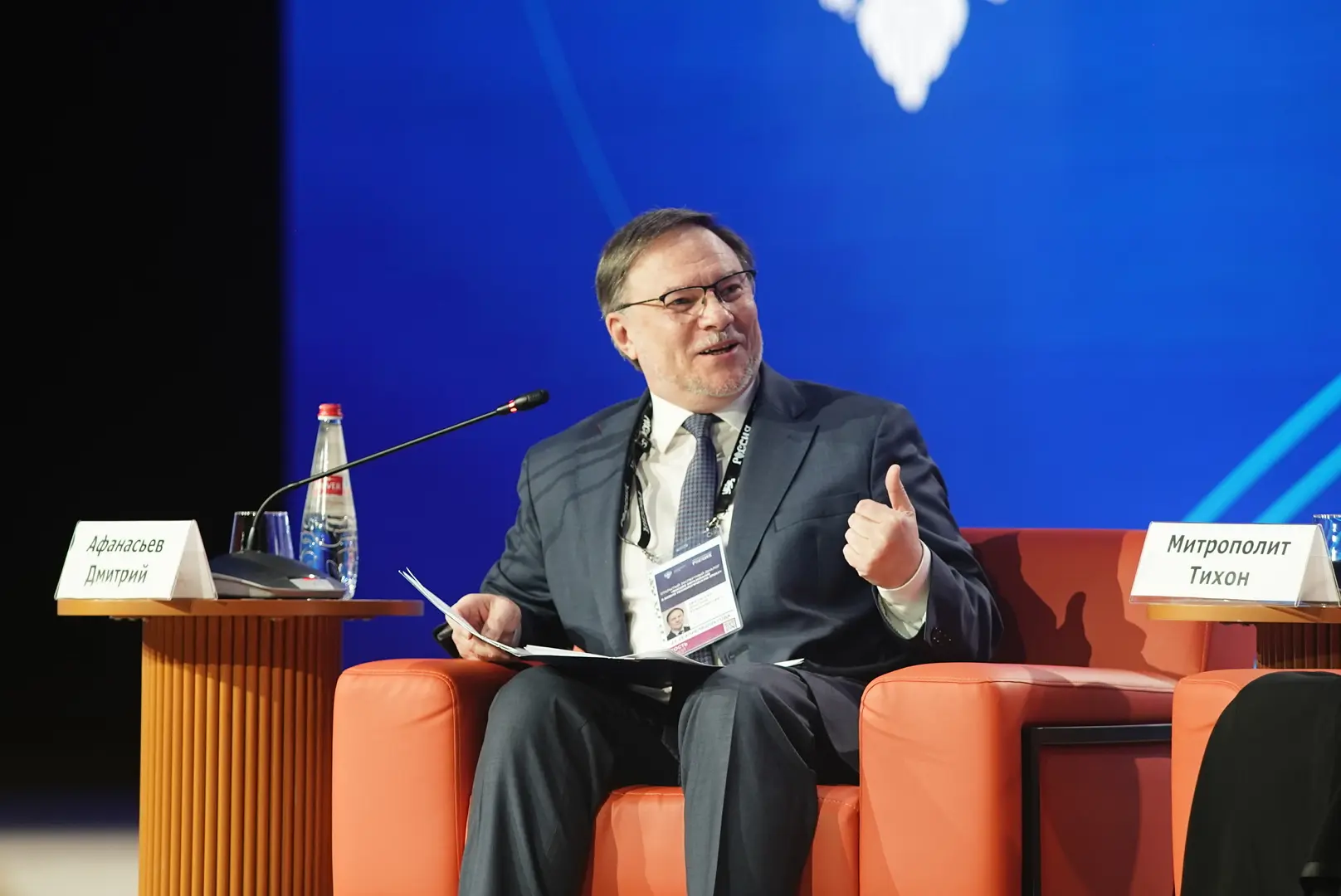 Заместитель Министра науки и высшего образования РФ Дмитрий Афанасьев выступил модератором дискуссии о социогуманитарной части фундаментального ядра образовательных программ. Участие в разговоре приняли ректор ТГУ Эдуард Галажинский, митрополит Симферопольский и Крымский Тихон (Шевкунов), советник ректора УрФУ Надежда Федорова, и.о. заведующего кафедрой истории русской философии МГУ Алексей Козырев.