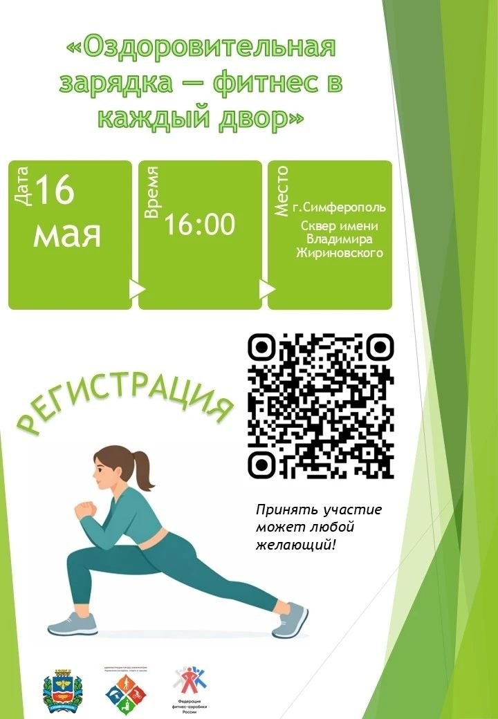16 мая 2026 года в рамках проведения Спартакиады города Симферополя, посвящённой году дворового спорта, пройдёт мастер-класс по фитнесу.