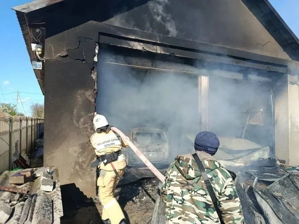 Автомобиль и гараж загорелись в Нижнегорском районе